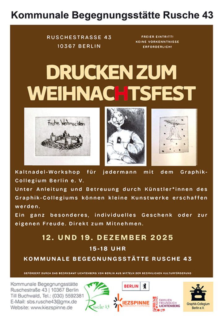 Weihnachtsdrucken für jedermann: Freitag 12.12. und 19.12.2025 Kostenfrei. Vorkenntnisse nicht erforderlich.